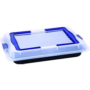 Backform - Bratenblech antihaftbeschichtet, mit einer Größe von Länge forty two cm x Breite 29 cm x Tiefe eight cm. Inklusive transparenter Transporthaube aus widerstandsfähigem Kunststoff.