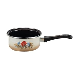 spülmschinengeeignet.für alle Herdarten einschl. Induktion.innen braun emailliert und aussen cremefarben emailliert mit brauner Schattierung.emailliertem Stahlblech.schwarzer Kunststoffgriff. ELO Kornblume Stielkasserolle Widerstandsfähige Emailserie im "Landhausstil", außen beige mit Blumendekor und farblich passender brauner Innenemaillierung. Praktische Kochgeschirre mit gemütlichem Charakter zum Wohlfühlen. Der Vollkontaktboden sorgt für die optimale Energieverteilung. Säurebeständig. Ideal für Allergiker, da nickelfrei. Sie können die ELO Kornblume Töpfe auf allen Herdarten verwenden, denn sie sind auch induktionsfähig..