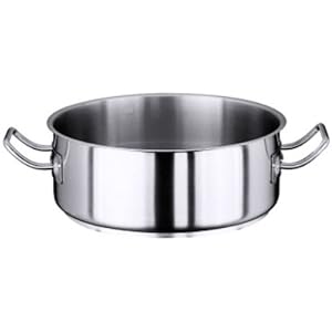Kochgeschirre.Kochtöpfe. Matt polierter flacher Bratentopf aus der Kochtopfserie 2100 von contacto. (Deckel bitte separat bestellen Art. 2161)). Die contacto-Kochtopfserie 2100 hat matt polierte Oberflächen, und ist somit unempfindlicher gegen optische Verunreinigungen. Die Handgriffe sind punktverschweißt und verhindern so ein Erhitzen der Grifffläche. Die Schüttränder sind nach außen geweitet und erlauben ein leichtes Abschütten. Ganz aus rostfreiem Chromnickel-Edelstahl 18/10 hergestellt: zero,8 mm Materialstärke bei Ø 12-24 cm 1,0 mm Materialstärke bei Ø 28-36 cm 1,2 mm Materialstärke bei Ø 40-60 cm Der 7 mm starke Boden ist in der bewährten Sandwich-Technik (Edelstahl-Alu-Edelstahl) gefertigt. Auf allen Kochstellen einsetzbar; Töpfe und Pfannen bis einschließlich Ø 50 cm sind auch für Induktionskochflächen geeignet..