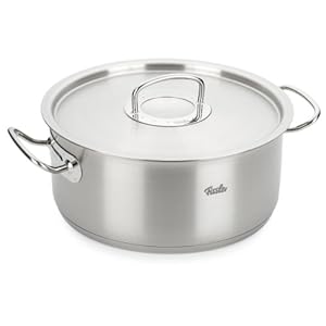 Cookstar-Allherdboden für beste Wärmeeigenschaften auf allen Herdarten.Spülmaschinengeeignet.Extra schwerer Deckel mit spezieller Wärmeschutzplatte.Große handlich Kaltmetallgriffe.Zeitloses Design, powerful und funktional.Der Fissler unique profi assortment® Bratentopf, 28 cm, 7,2 l, induktionsgeeignet der Fissler Serie original profi collection bietet höchste Qualität und Langlebigkeit. Er ist das perfekte Handwerkszeug für alle, die ein funktionales und extrem robustes Kochgeschirr "Made in Germany" bevorzugen..