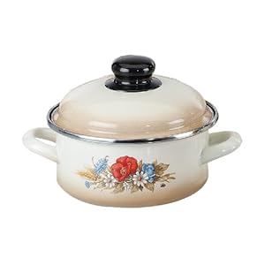 innen braun emailliert und aussen cremefarben emailliert mit brauner Schattierung.emailliertem Stahlblech.emaillierte Hohlgriffe; Hitzereduzierend; hochgewöbter Emaildeckel mit Kunststoffknopf.für alle Herdarten einschl. Induktion.spülmschinengeeignet. ELO Kornblume Bratentopf mit Deckel Widerstandsfähige Emailserie im "Landhausstil", außen beige mit Blumendekor und farblich passender brauner Innenemaillierung. Praktische Kochgeschirre mit gemütlichem Charakter zum Wohlfühlen. Der Vollkontaktboden sorgt für die optimale Energieverteilung. Säurebeständig. Ideal für Allergiker, da nickelfrei. Sie können die ELO Kornblume Töpfe auf allen Herdarten verwenden, denn sie sind auch induktionsfähig..